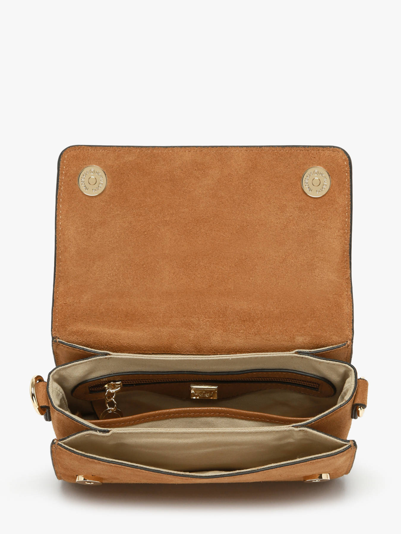 The ETRIER crossbody bag from the ALTESSE SUEDE line is offered in its medium size, the S model. This new winter edition of our iconic line features soft, warm velvety leather, combining timeless elegance with a ""Highlander Cowboy"" spirit. The back of the bag is made of grained leather for enhanced durability. Equipped with a back pocket and a magnetic flap accented by the gold-tone Etrier emblem, it can be carried by hand using its small handle or worn on the shoulder with its adjustable, removable strap.