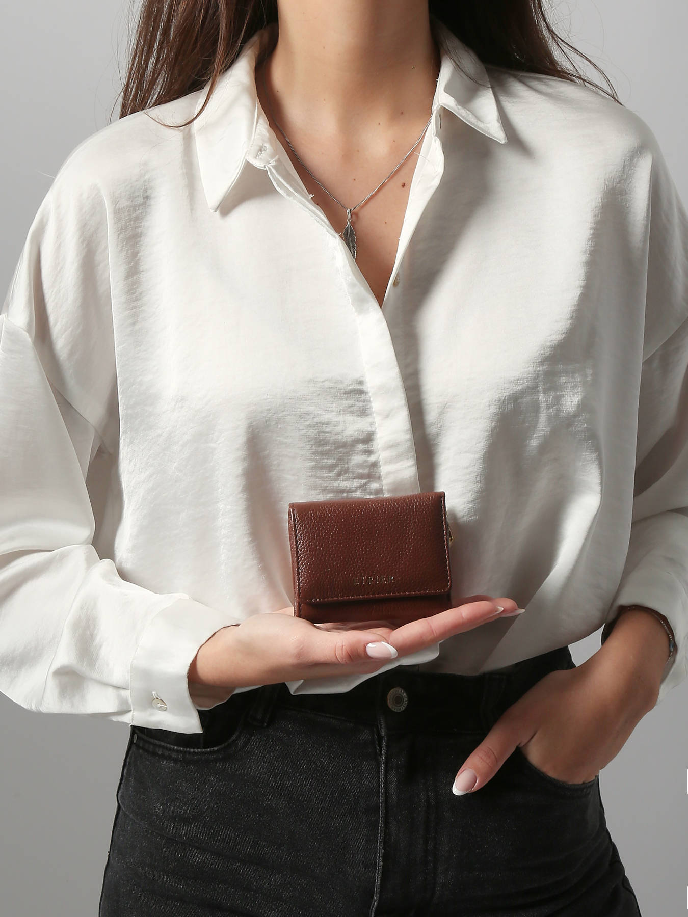 Made from full-grain cowhide, this wallet from the TRADITION line by ETRIER features grained leather renowned for its durability and refined feel. Designed to meet the needs of modern women and men, it perfectly combines aesthetics and functionality. Inside, this wallet has 6 slots dedicated to bank cards, allowing you to organise your credit cards, loyalty cards or other essential documents. It also has a practical zipped pocket, ideal for safely storing your change. The gold jewellery details enhance the design, while recalling the emblematic codes of the TRADITION line. Compact and elegant, it slips easily into a bag or pocket, while adding a touch of sophistication to your everyday life.