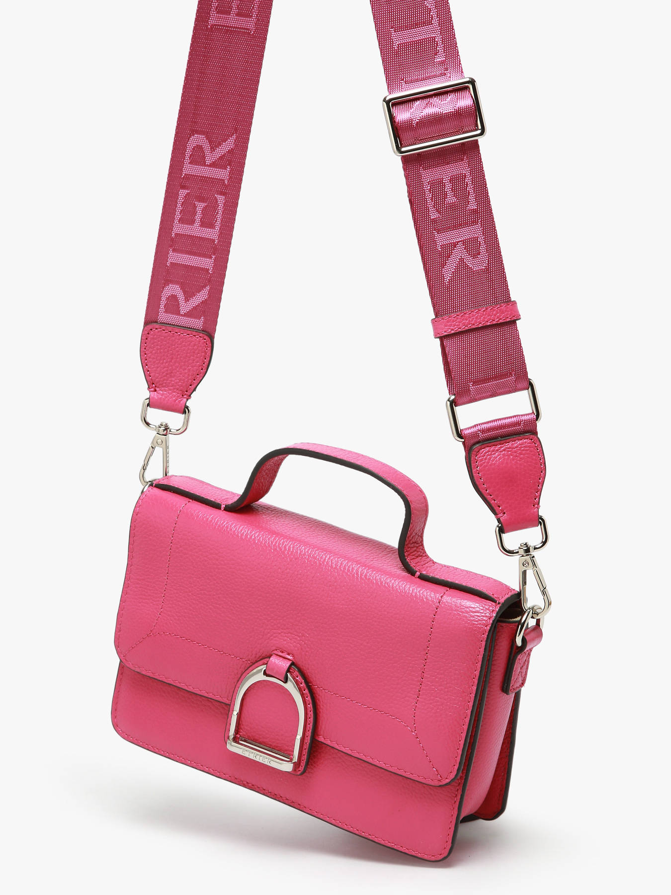 Le sac bandoulière ETRIER de la ligne ALTESSE, de format moyen, est conçu en cuir de vachette. A l’arrière se trouve une poche plate. Il propose une large bandoulière amovible en toile brodée du logo ETRIER ton sur ton, ainsi qu'une anse en cuir. La fermeture à rabat, ornée de l'étrier en métal emblématique de la maison, se sécurise par pression. Polyvalent, il peut être porté en bandoulière ou à la main. À l'intérieur, découvrez un porte-clé en cuir, un compartiment avec une poche simple et une poche éclair pour une organisation optimale. Disponible dans plusieurs coloris saisonniers, ainsi qu'en tailles supérieure et inférieure.