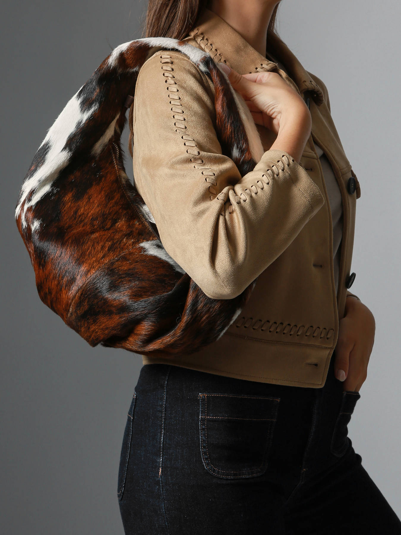 Le sac porté épaule REBOND d'ETRIER, véritable pièce signature, s'impose comme un incontournable de la saison. Avec sa silhouette hobo élégante et son cuir velours souple, il incarne à la perfection le chic effortless.